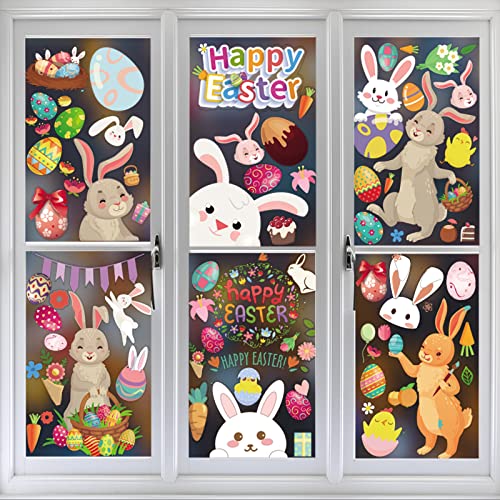 Adesivi per Finestra Pasquale 9 Fogli Adesivi Pasqua Finestre Decalcomanie autoadesive per finestre Adesivi Coniglietto Uovo Pasquale Forniture per Decorazioni per Feste Domestiche