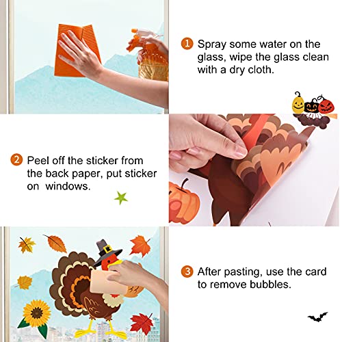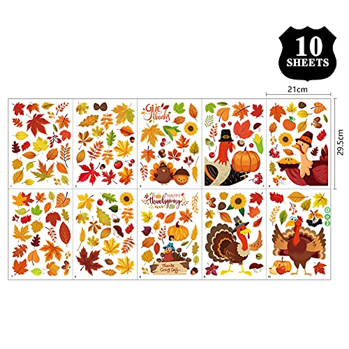 Adesivi per Finestre del Ringraziamento Vetrofanie Foglie d'Autunno Tacchino Zucca Stickers Decorazioni di Feste Autunnali Thanksgiving Decorativi Adesivo con Stampa Fronte-retro Riutilizzabile