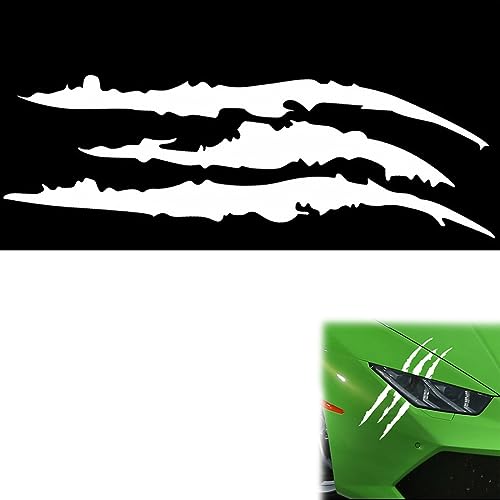 2 Adesivi Auto a Forma di Graffi Tuning Sport,Stickers Adesivi Artigli Mostro Moto Macchina Esterni 40 x 12 cm (Bianco)