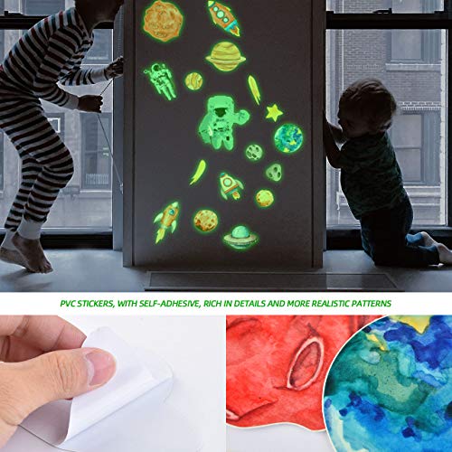 Adesivi Fosforescenti, Pajaver Fluorescenti Adesive Soffitto Bambini,Adesivi Luminosi al Buio per Camerette, Ideale per Cameretta Bambini Camera Letto - 9 Pezzi Dinosauri (Astronaute)