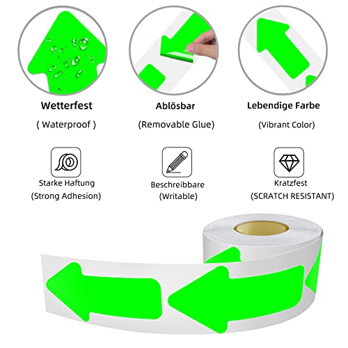 200 adesivi a freccia, 5 x 10 cm, per marcare il pavimento, autoadesivi, resistenti alle intemperie, verde fluorescente