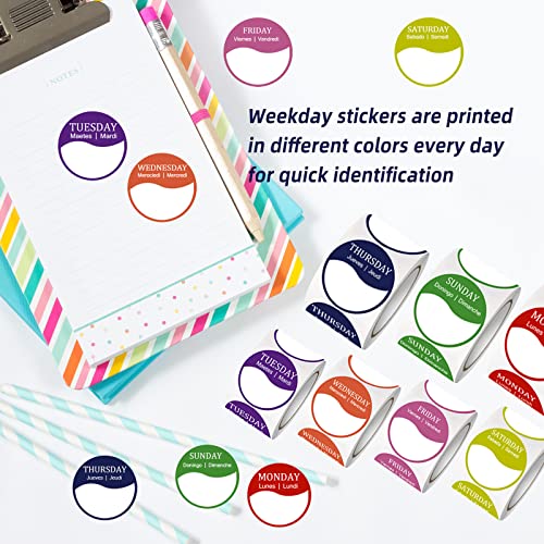 ✅ 【Design unico】 Gli adesivi del giorno della settimana vengono stampati in un colore diverso ogni giorno per una rapida identificazione e ogni etichetta viene lasciata vuota per contrassegnare facilmente la data e il contenuto con una penna.