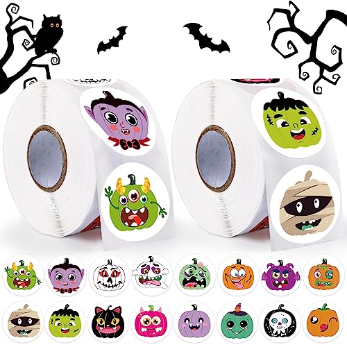 【Set di valori】: 2 rotoli, 1200 adesivi, ci sono 8 simpatici motivi di Halloween in un rotolo (ogni adesivo di Halloween da 1,5 pollici. Abbastanza per soddisfare le tue esigenze di quantità da decorare ad Halloween.