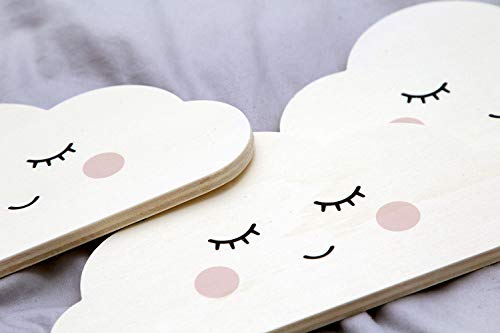 Set di 3 adesivi XXL in legno con nuvole Sleepy Eye, effetto 3D, per cameretta dei bambini, colore: bianco