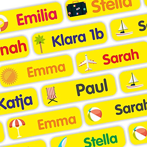 Adesivi con nome - Marcatura di oggetti -120 pezzi - 35x10mm - Vacanza - giallo - Etichette adesive - bambini, scuola e asilo - per penne, astucci, portapranzo