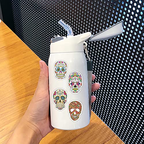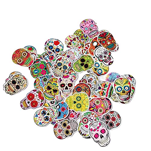 50 adesivi misti a forma di teschio horror, borraccia, per computer, laptop, telefono, auto, bici, tablet, Halloween, teschi di zucchero messicani, terrore spaventoso teschio, adesivi graffiti