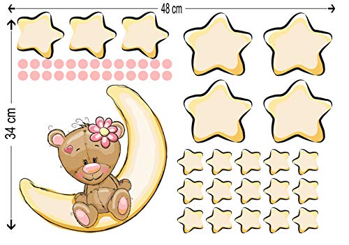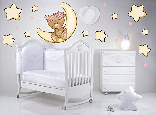 Adesivi Murali Cameretta - ORSETTO STELLE NOTTE LUNA Femmina Bambina - 48 cm - WALL STICKERS
