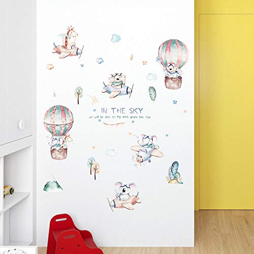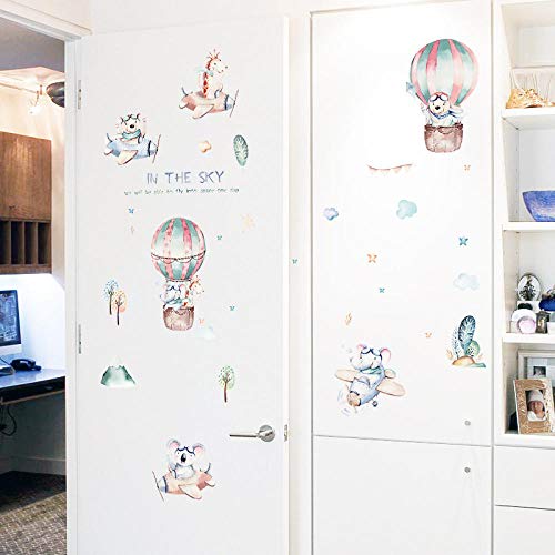 Adesivi murali Cartoon Nuvole Elefante Aereo Palloncino Camera dei bambini Sfondo muro Adesivi murali per Decor Murale Art Decal Home Decor-50 × 70CM