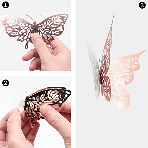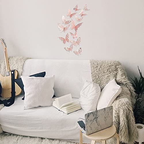 Adesivi Murali a Farfalla, 24 Pezzi Adesivi Murali di Arte 3D Autoadesivi Murali, Impermeabile Carta Kraft Farfalle Decalcomanie per Muro e Stanza, Arredamento Accessori Camera da Letto (Oro Rosa)