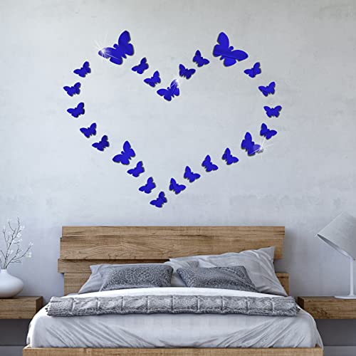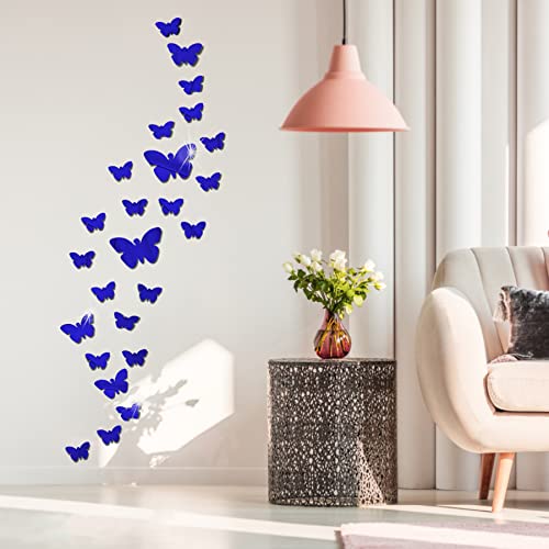 Adesivi Murali Farfalle 3D Specchio a Farfalla Adesivi Murali Tridimensionali Acrilico Rimovibile 25 Pezzi Fai dante Adesivi Murali Decorazione da Muro per Casa/Hotel/Salotto/Camera/Cucina(Blu)