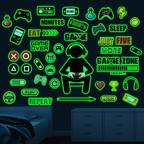 Adesivi Murali Fluorescenti Gioco Adesivi da Parete Giochi Fluorescenti per Camera Bambini Adesivo Muro Gamer Luminoso Stickers Murali Videogiochi Fluorescenti per Camera da Letto Ragazzo Gaming Room