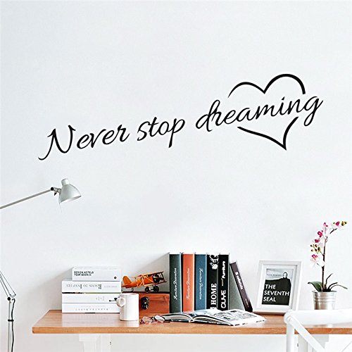 Adesivi Murali Frase "Never Stop Dreaming" Stickers Neri Frasi Scritte Muri in Camera da letto Dormitorio e Soggiorno Decorazione Parete