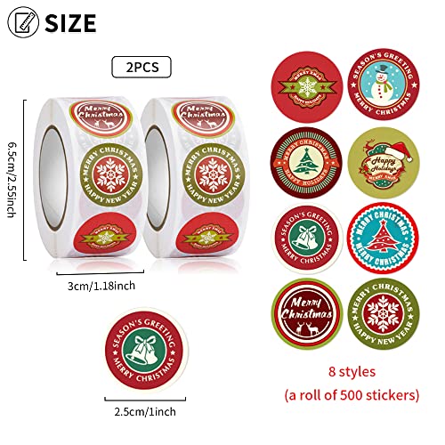 Adesivi Natalizi Sigilla Etichette, 1000PCS Adesivi Rotondi Natalizi Rotolo, Etichetta Adesivi Merry Christmas per Scatole Regalo, Scrapbooking e Regali di Natale Fai da Te
