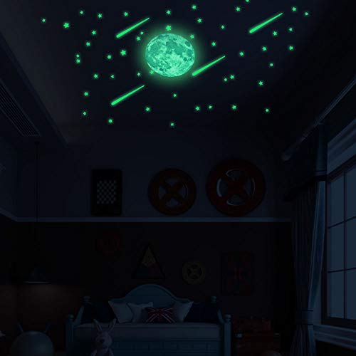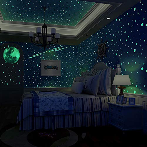500 adesivi da parete con stelle che si illuminano al buio, stelle scure e luna piena per soffitti o pareti, per bambini, ragazze e ragazzi, decorazioni per camera da letto