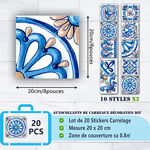 Decorazione DIY- 20 pezzi di adesivi per piastrelle sono inclusi.Ci sono tre taglie tra cui scegliere -10x10/15x15/20x20 cm.Stile retrò e bellissimo motivo di design, permettendoti di personalizzare e progettare completamente la tua superficie nel modo che preferisci.
