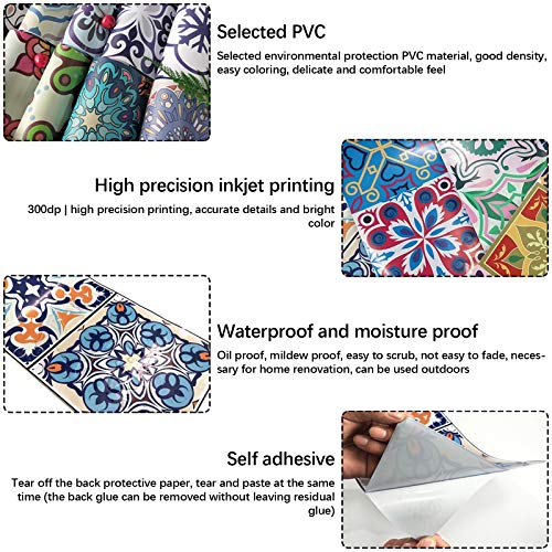 Adesivi per Piastrelle Formato in PVC, 10 Pezzi Adesivo Murale per Piastrelle Impermeabili con Simulazione Floreale Piccola Autoadesivo per Bagno Cucina Parete Fai da Te (10*10CM)