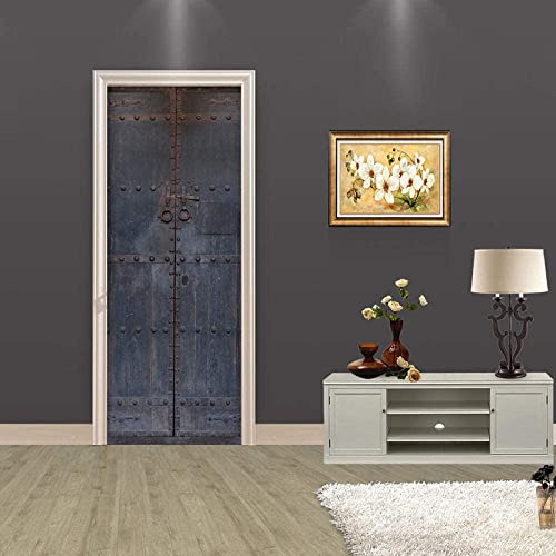 1 Set Di 2 Pz Adesivi Per Porte 3D Autoadesiva Murale Adesivo Da Parete Cancello D'Epoca In Ferro Squallido Impermeabile Adesivi Per Porte In Pvc Casa Decorazioni Adesivo Rimovibile 95X215 Cm - Adesi