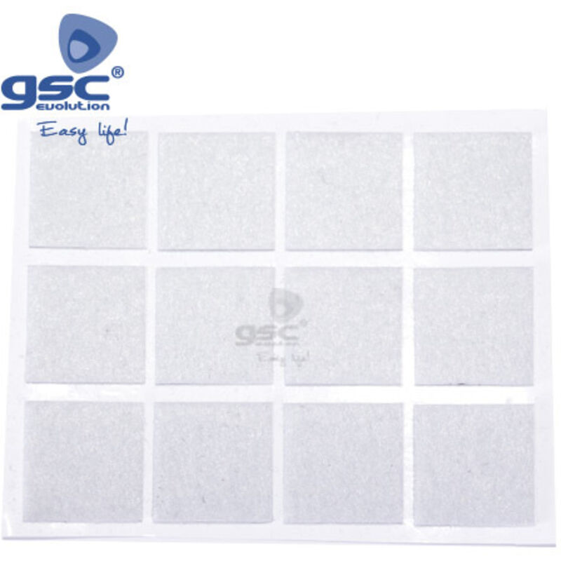 Feltro adesivo protettivo bianco Tipo: quadrato. Adesivo acrilico ad alta aderenza. Colore bianco Misura: 20x23mm Confezione da 12 unità