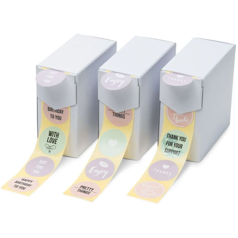 AGGIUNGETE UN'ETICHETTA! Questi 250 sticker autoadesivi per regali della rillprint sono perfettamente utili per trasformare un semplice pacchetto in una confezione regalo! Queste etichette di carta per regali vengono fornite in tre rotoli all'interno di pratiche scatole, così potete facilmente estrarle singolarmente. Con 250 adesivi per rotolo, avrete un adesivo abbinato per ogni confezione regalo. Potete anche donare ai vostri regali un aspetto elegante con queste etichette adesive di carta con diversi colori e testi! Colore: Pastello Materiale: Carta Diametro: 35 mm La consegna include: 750 adesivi (3 rotoli con 250 adesivi ciascuno) SKU: 441051