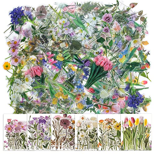 Adesivi per scrapbooking (6 set, 240 pezzi), accessori per scrapbook Stickers Aesthetic Decorativi Bullet Journal Sticker Trasparenti Adesivi Vintage Piante Temi Naturali