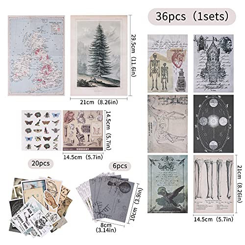 6 pezzi 3,9x3,14 pollici e 20 pezzi di adesivi per scrapbooking di altre dimensioni, il totale è di 36 diversi modelli di confezione di adesivi fai da te per scrapbooking vintage di moda.