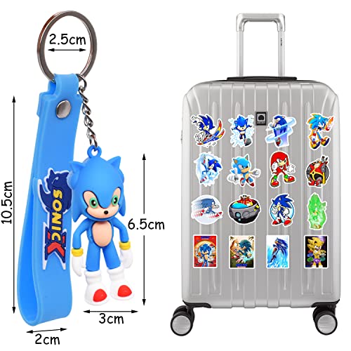 Adesivi Sonic simyron Adesivi Sonic e portachiavi in silicone Sonic 51 pezzi Regalo Sonic Adesivi 50 pezzi Sonic con 1 pezzo Portachiavi in silicone Sonic per bambini Bomboniere regalo