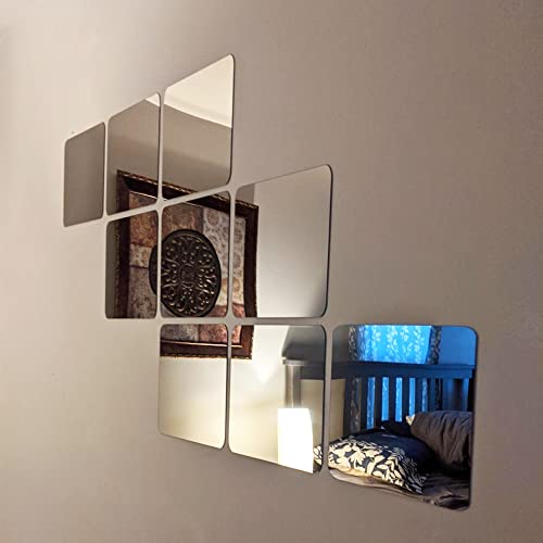Set di 16 adesivi per specchietti da parete, in plastica autoadesivi, quadrati e flessibili, per specchi di vetro, per fai da te, decorazione della casa, decorazione della stanza (15 x 15 cm)