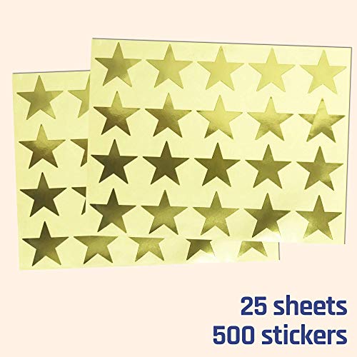 Adesivi Stelle Brillante Ricompensa - 15mm (500 Pezzi, Oro)