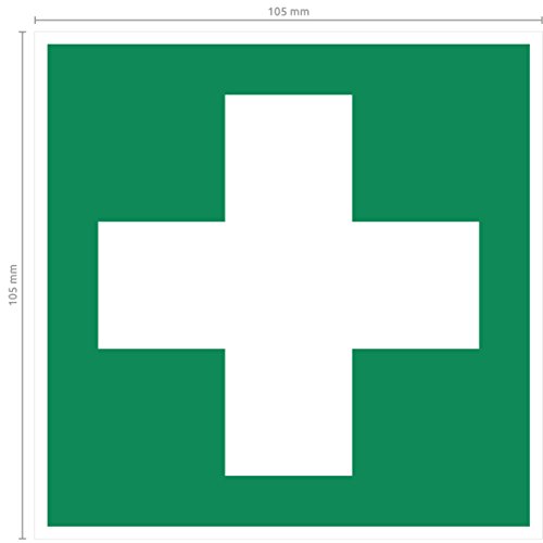 Gli adesivi primo soccorso sono 105 mm di lunghezza e 105 mm di larghezza. Adesivo di primo soccorso è accessorio per il tuo kit primo soccorso o valigetta primo soccorso. Il kit di adesivi di aufklebo è made in Germany.