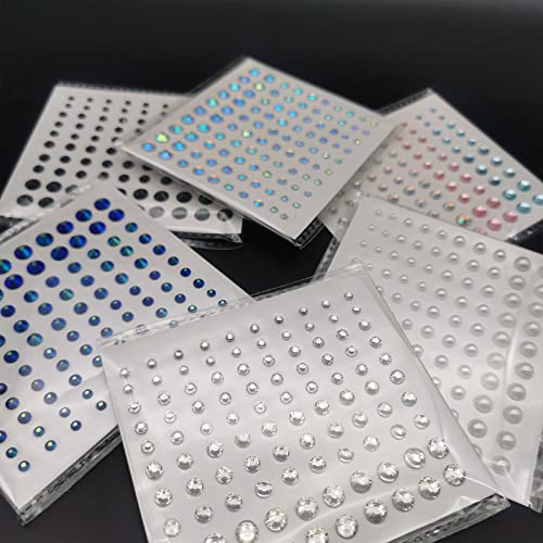 Adesivi Strass,Glitter make up, Cristallo Gemma Autoadesivo,Acrilico Glitter Strass Adesivi,per Brillantini Decorazione Fai da Te,Make-up,Viso,Unghie,16 fogli dimensioni miste(2640 pezzi)