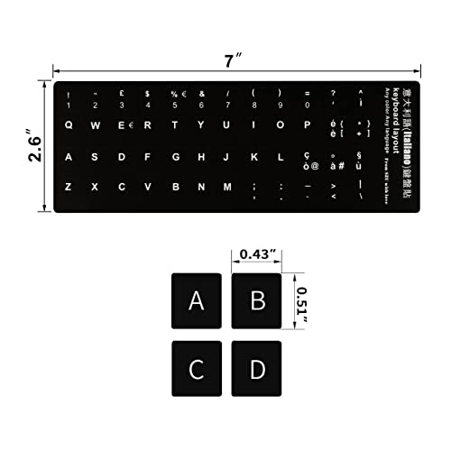 Adesivi tastiera italiana, adesivi universali da 1 pezzi, adesivi per tastiera del computer per un riconoscimento più rapido della tastiera, nessun danno alla tastier (Nero)