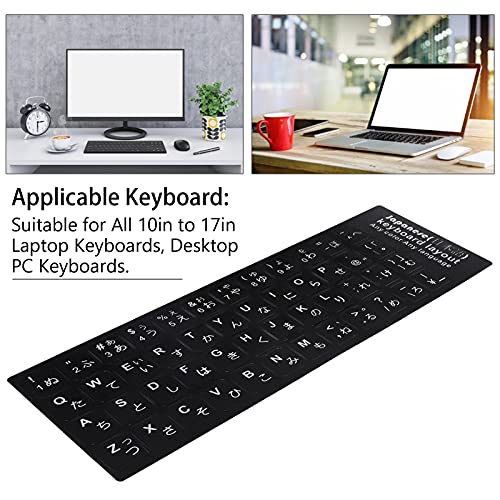 Adesivi Universali per Tastiera Giapponese, Adesivi per Tastiera del Computer Sfondo Nero con Scritte Bianche, Adesivo per Tastiera Impermeabile per Computer Portatile da 10-17 Pollici Desktop