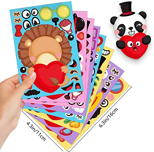 Adesivi fai da te per San Valentino, 24 fogli di San Valentino, per bambini, fai da te il tuo animale per San Valentino, festa