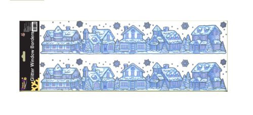 Adesivi per windows natale glitterata - scena di villaggio e fiocco di neve design