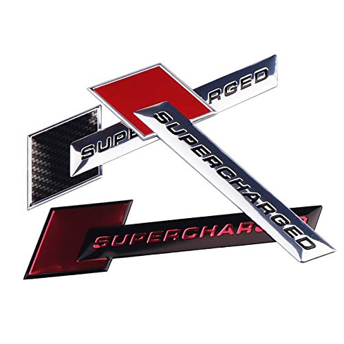 Adesivo 3D in alluminio 3D per auto in metallo logo distintivo SUPERCHARGED (nome: NERO ARGENTO)