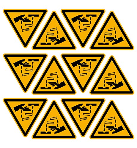 Adesivo di avvertimento per sostanze caustiche, ASR/ISO W023, SL50 mm, 12 pezzi