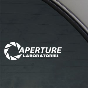 Adesivo per finestra con scritta "APERTURE SCIENCE LABORATORIES"