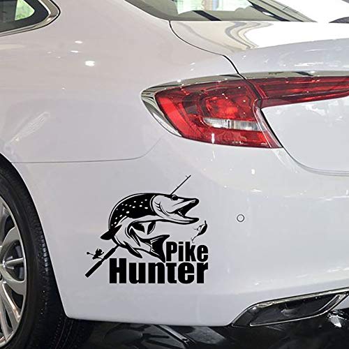 : L'adesivo presenta "Pike Hunter" e motivo a pesci, molto creativo.