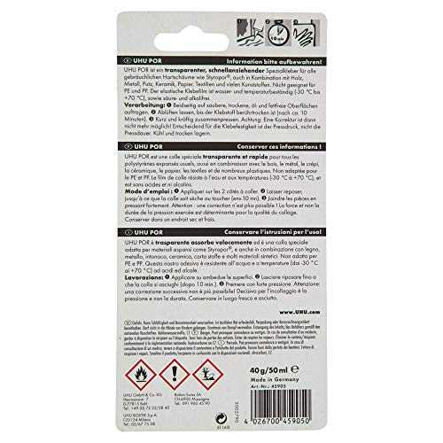 UHU Por Adesivo Per Modellismo Per Polistirolo Espanso 40g