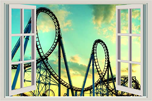 ADESIVO DA MURO - Montagne Russe 3D Window - Adesivo murale Wall Sticker Decalcomania In Vinile Arte Murale Decor (150x100)