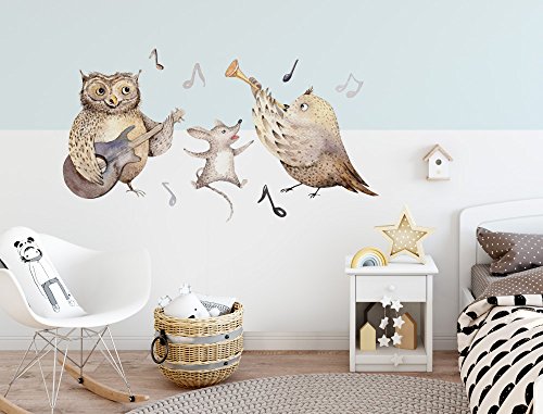 Adesivo murale Camera per bambini Amici animali musicali con gufo topo e uccell