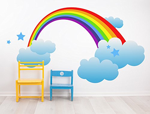 Adesivo murale Camera per bambini Arcobaleno con nuvole e stelle bambini decora