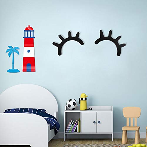 Adesivo da parete in legno con ciglia, 3D, decorazione per camera dei bambini, 2 pezzi, colore: nero