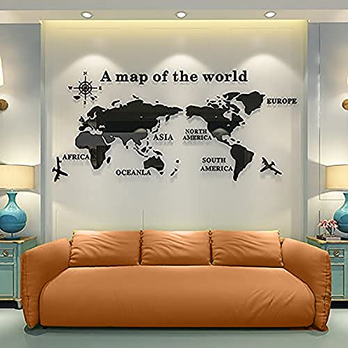 Adesivo da Parete Mappa del Mondo, Mappa del Mondo Specchio, Adesivo da Parete in Acrilico, 3D Acrilico Arts Mappa Mondo Decorazione per Camera da Letto Soggiorno Ufficio Parete Sfondo(Nero)