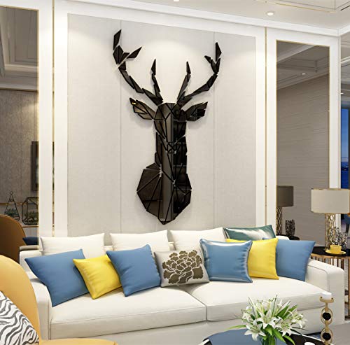Adesivo da Parete 3D Rimovibile Cervo Adesivi Murali Fai da te Arts Wall Sticker Decorativi per Soggiorno, TV Parete, Camera da Letto, Asili Nido, Ufficio, Bambini Stanze (XL, Nero)