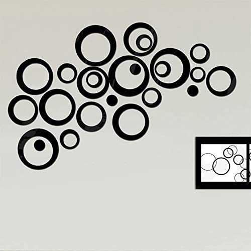 Adesivo Parete Specchio Decal, XiXiRan Adesivi Murali Specchio Circolare, Adesivo Specchio Cerchio, Specchio Adesivo Parete, per Casa Decorazione Soggiorno Camera da Letto(24 Pezzi, Nero)
