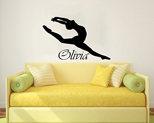DecorimDecorWallDecal - Adesivo da parete in vinile, personalizzabile con nome, motivo ballerina/ginnasta, per camera da letto o scuola di danza, per bambina