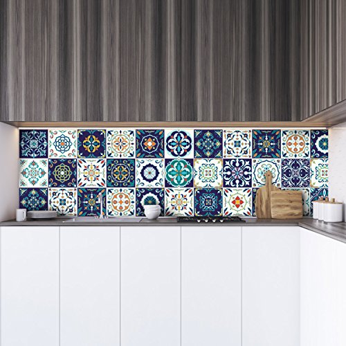 APPLICAZIONE FACILE: Permette una posa precisa delle vostre piastrelle azulejos mosaico senza formazione di bolle d'aria. Gli stickers autoadesivi sono già pretagliati . L'applicazione é quindi semplicissima, basta ritirare dal supporto cartaceo e posare su una superfice liscia e pulita.