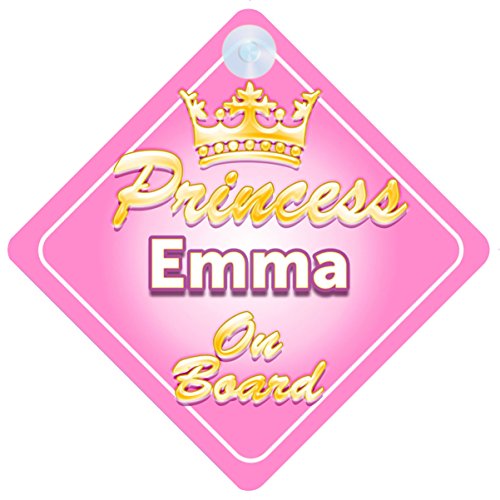 Adesivo per auto con scritta "Emma on board" e corona, per bambina (personalizzabile)