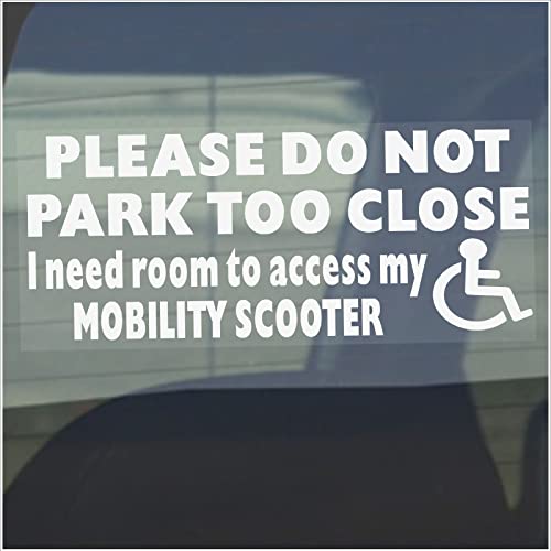 Adesivo con scritta ”Please do not park too close, I need access to my mobility scooter”;